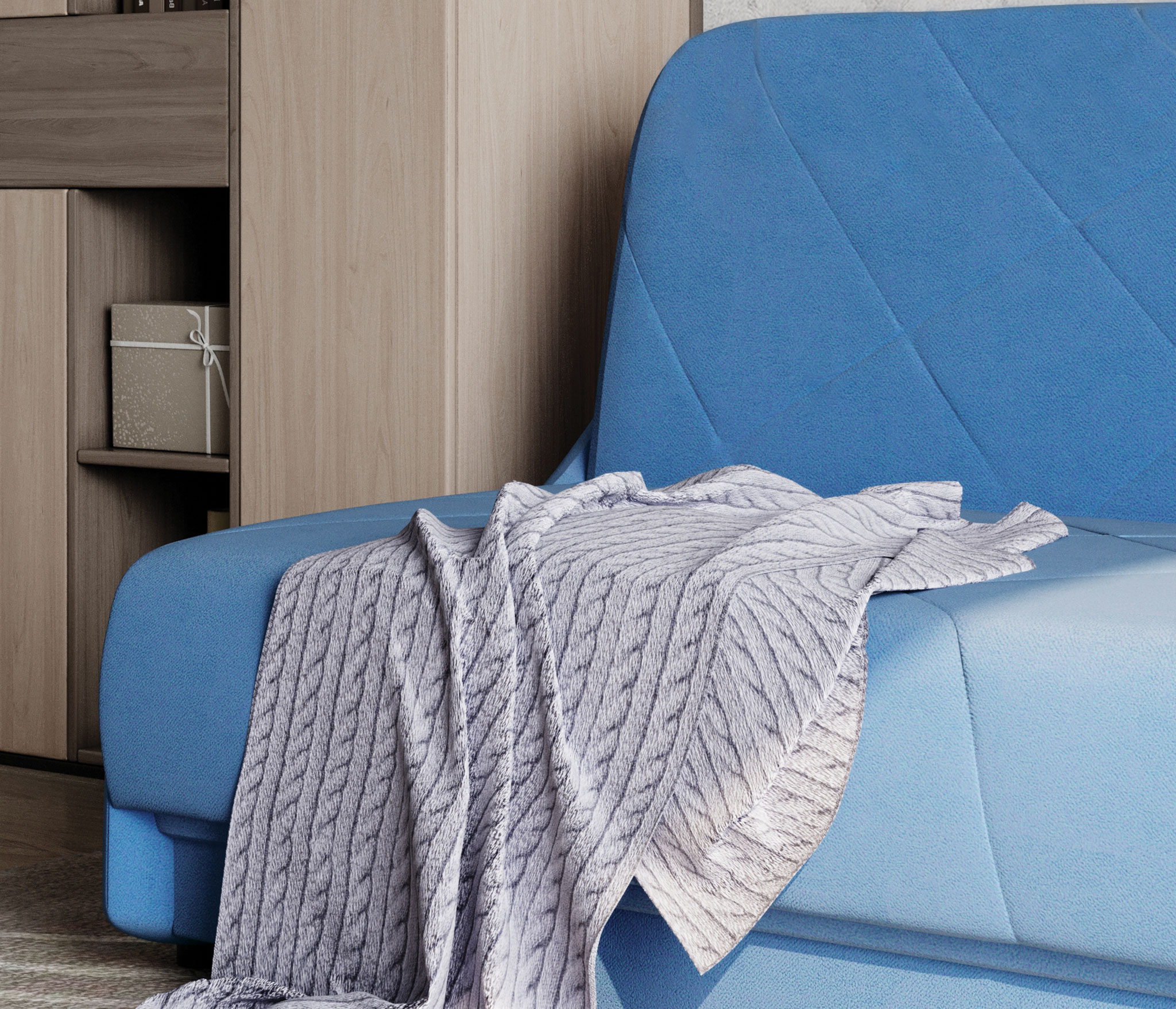 Ткань чехла простегана на периотеке, что придает дополнительный объем и мягкость.