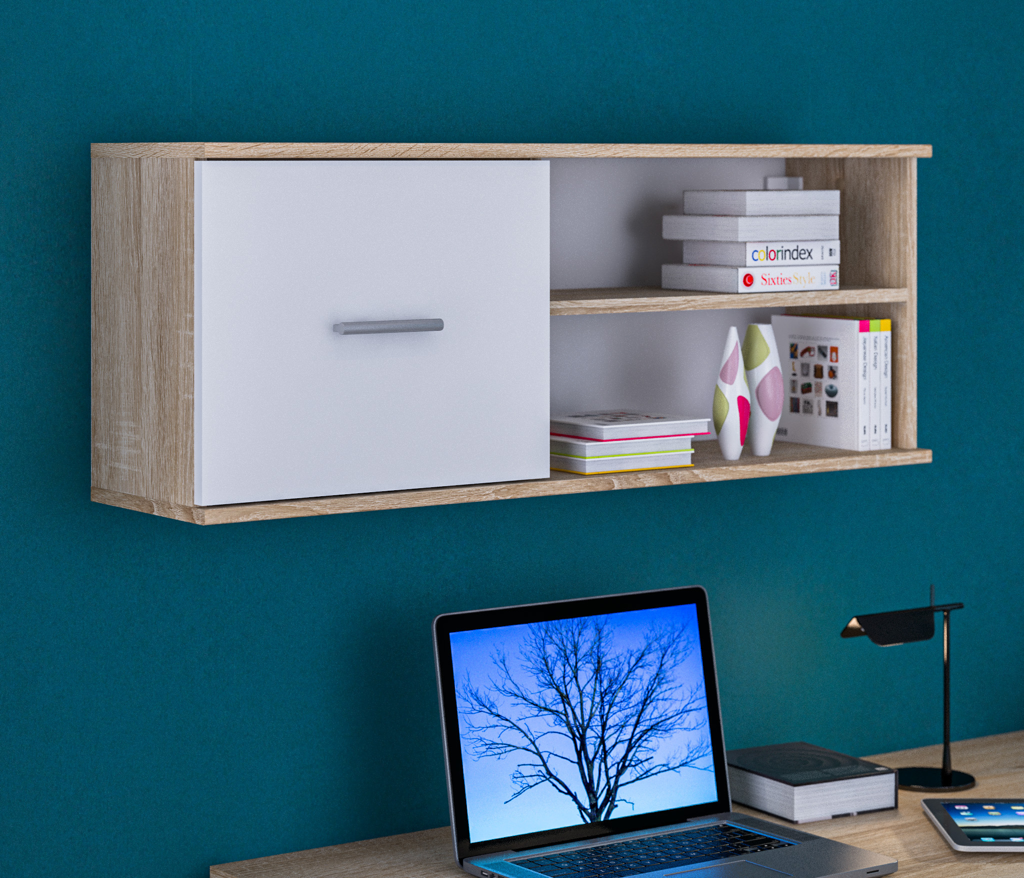 Полка навесная Мамбо СБ-2368 (Дуб Сонома/Белый)
