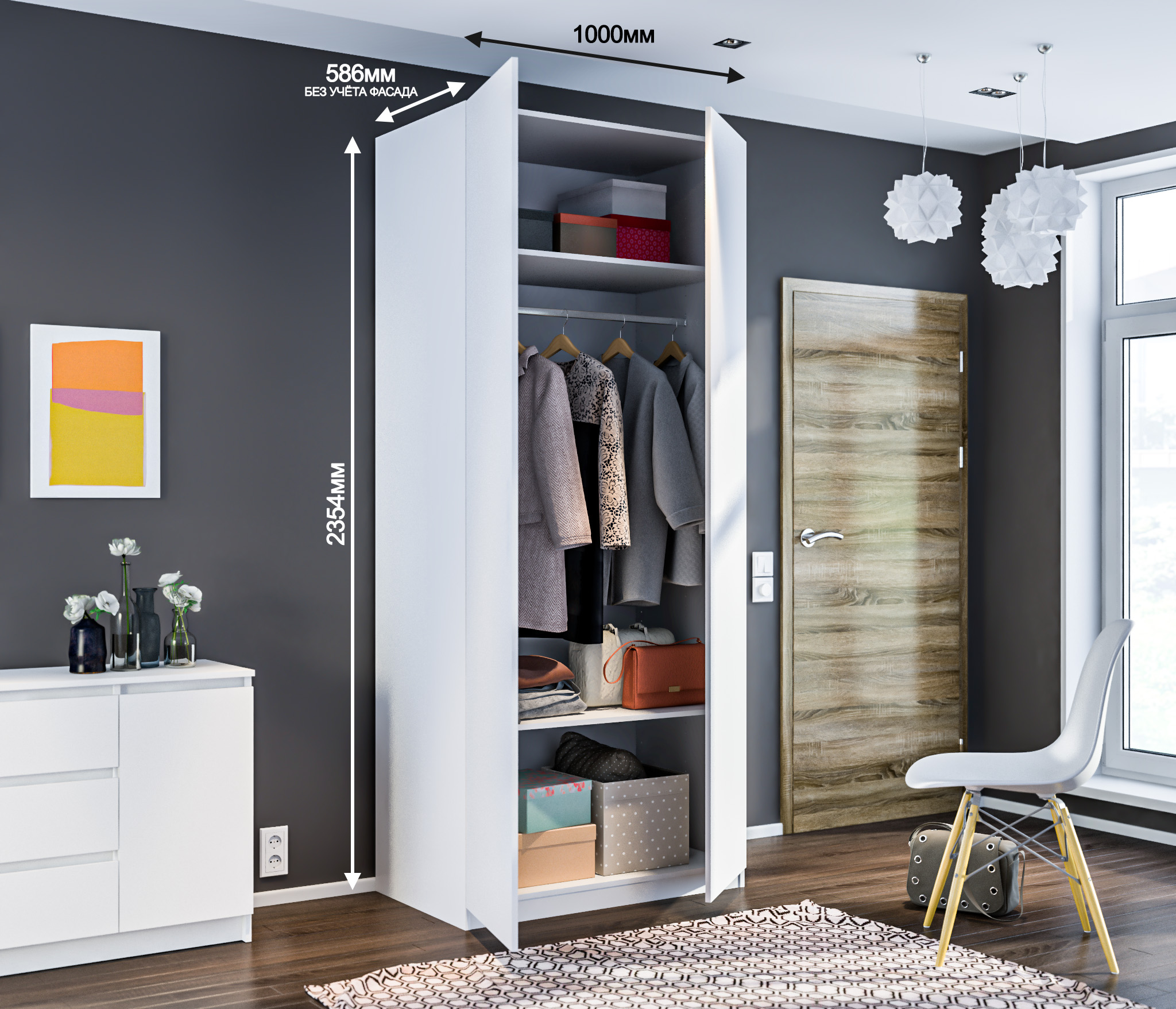 Размер шкафа: 2354х1000х602 мм